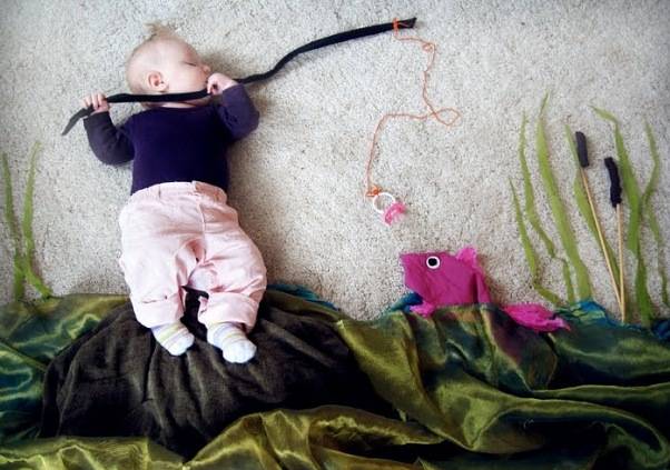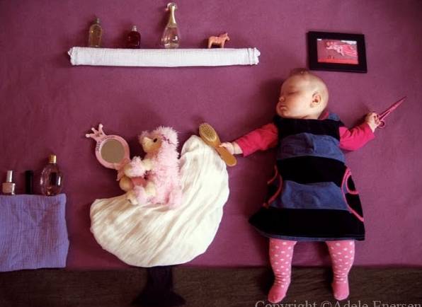 Hace unas semanas recibí un bonito mail de una amiga en la que me mostraba originales fotos que, en teoría, una mamá de Finlandia hace de su bebé, creando unos escenarios muy especiales. Aquí van algunos de ellos