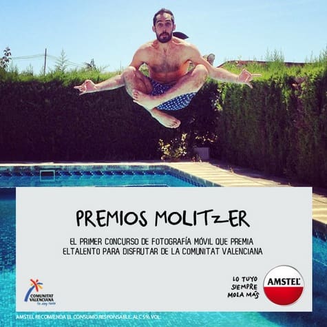 Amstel, en colaboración con la Agencia Valenciana del Turismo, lanza una nueva campaña de marketing que busca promocionar la fotografía amateur y potenciar el turismo en la Comunidad Valenciana. Para ello han creado el primer concurso de fotografía móvil: los Premios Molitzer, algo así como los Pulitzer pero para el móvil. Los participantes deben subir las imágenes que quieren presentar a concurso a Twitter o a Instagram, plataformas que pueden utilizarse a través de un smartphone.